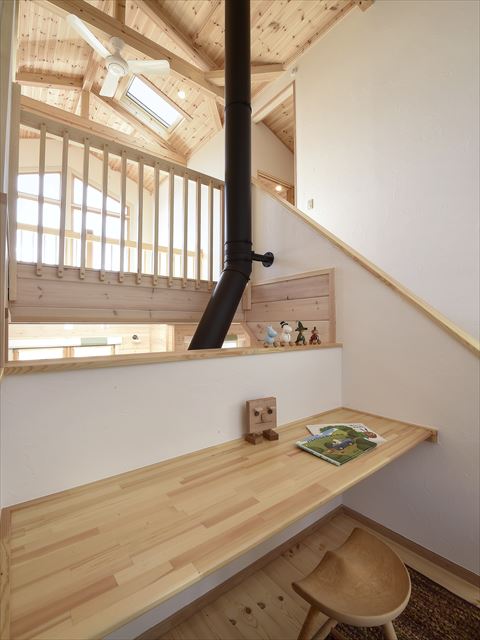 2015年 浜松市西区西山 2階 40坪 ムーミンカラーの家! オーナー様のこだわりがたくさん詰まったお家が出来上がりました! リビングの上に大きなフィックス窓がついていて大変明るく気持ちの良いLDK 1Fには和室もありいろいろな場面での活用が出来ます。 階段途中にホビースペースを設け多目的に使っていただけるのも魅力です。 ※画像をクリックすると拡大表示されます。